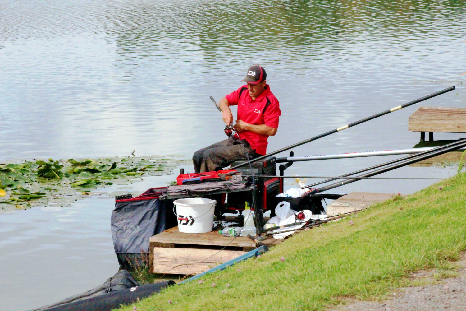 Later switching to his short line and down his edges, weighing 103-6-0 of carp and F1’s.