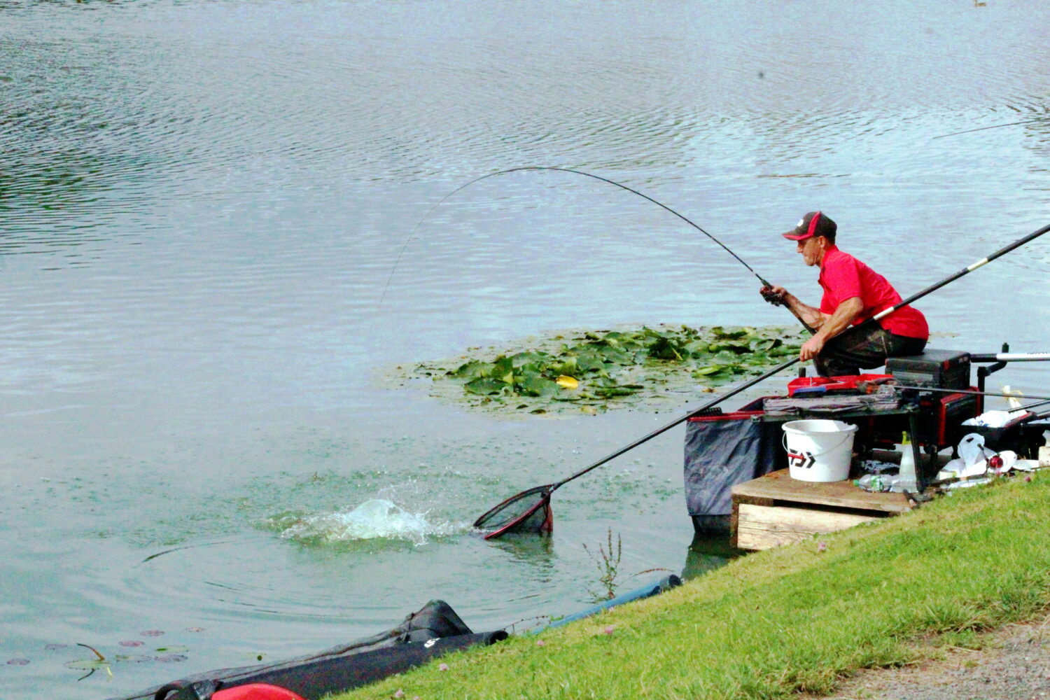Later switching to his short line and down his edges, weighing 103-6-0 of carp and F1’s.